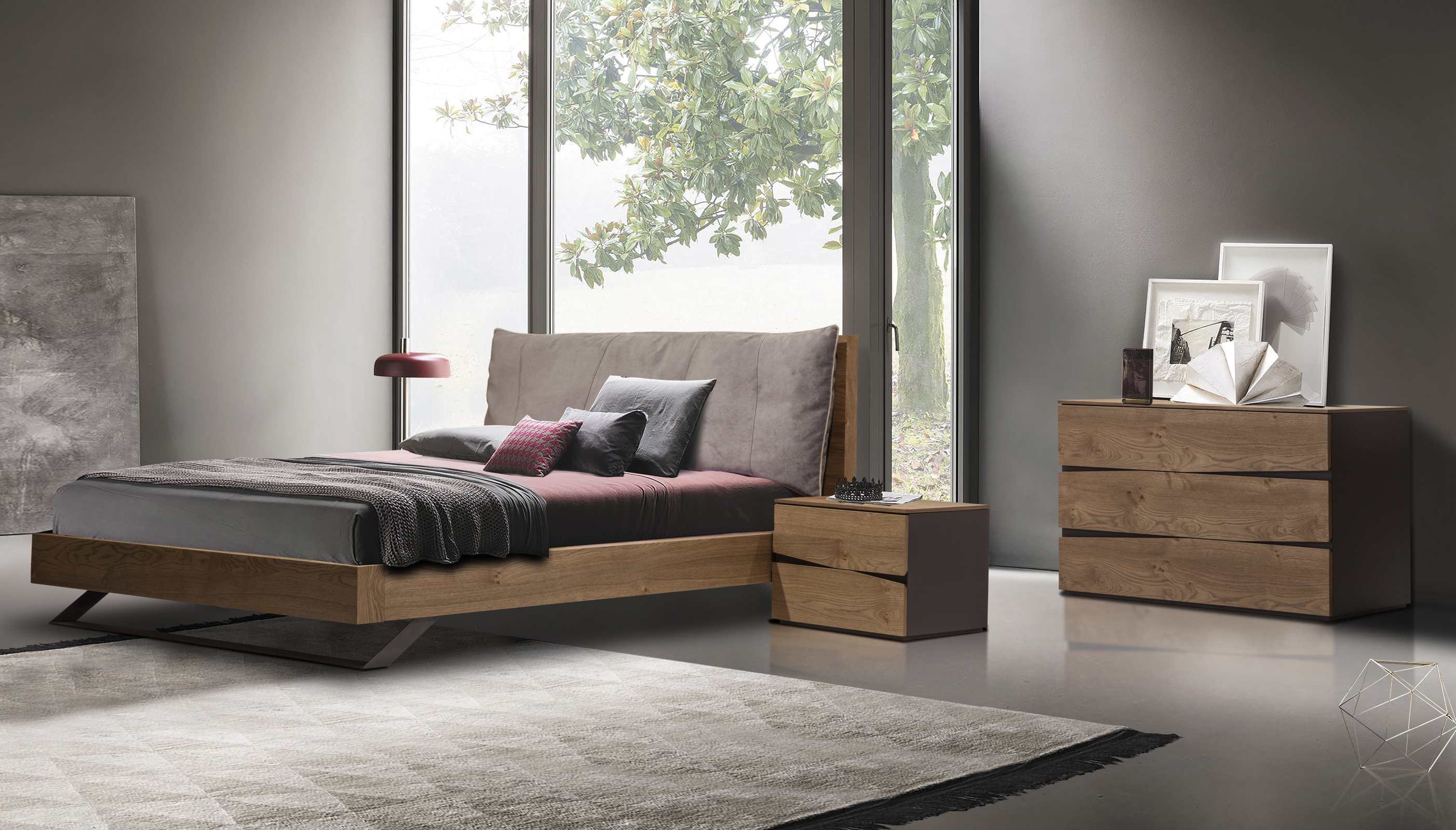 Μοντέρνα κρεβατοκάμαρα παραγόμενη απο ξύλο δρυς ρουστίκ.