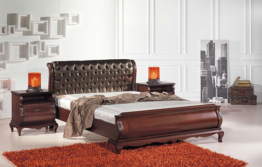 Κλασικό κρεβάτι με έντονα καμπυλωτά στοιχεία και καπιτονέ κεφαλάρι.