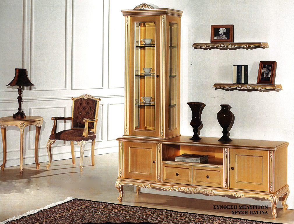 Σύνθεση Μελύριτον. Σύνθεση Μελύριτον. Χειροποίητη σύνθεση τηλεόρασης με βιτρίνα και επιτοίχια ράφια σε πατίνα χρυσή. Συνοδεύεται με χειροποίητο τραπεζάκι λάμπας και πολυθρόνα με καπιτονέ ταπετσαρία. Προηγούμενο Επόμενο tweet