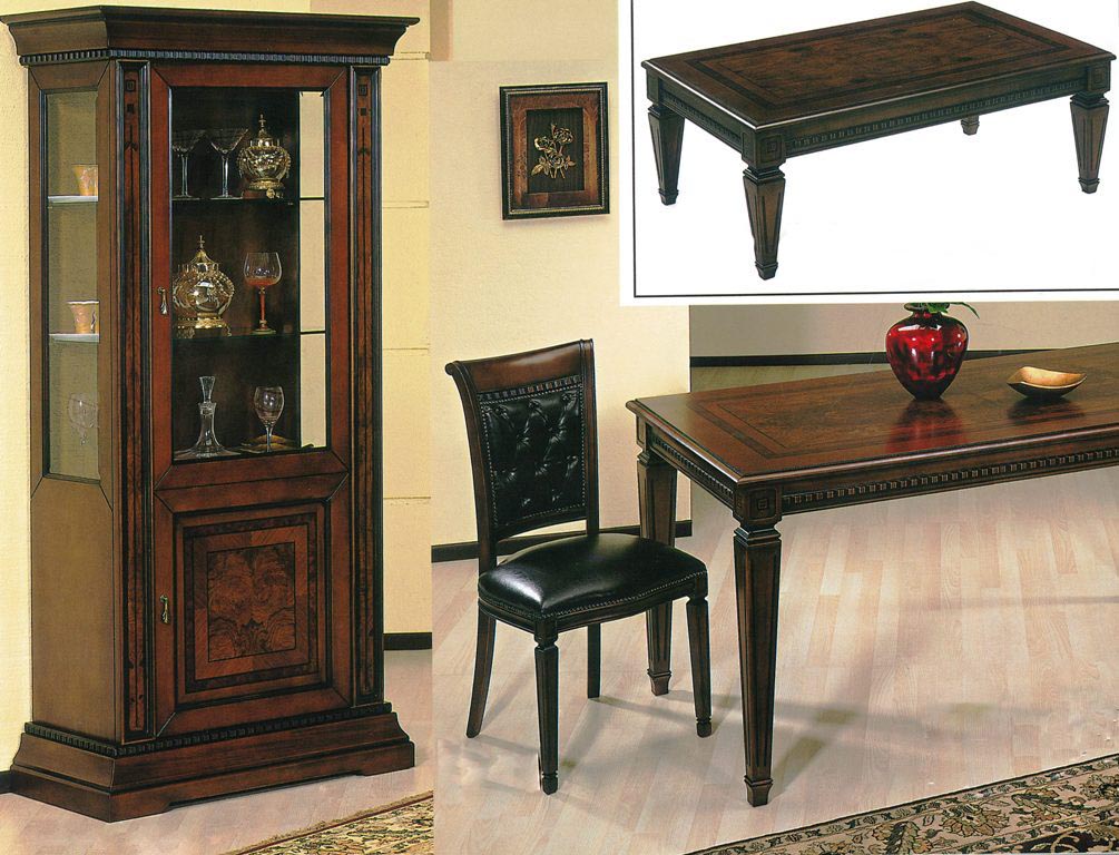 Τρ. Αλέξανδρος. Τραπέζι Αλέξανδρος. Κλασικό τραπέζι με μαρκετερί και ρίζα καρυδιάς στο καπάκι.Συνοδεύεται με καπιτονέ καρέκλα σε δέρμα και μονόφυλλη βιτρίνα. Προηγούμενο Επόμενο tweet