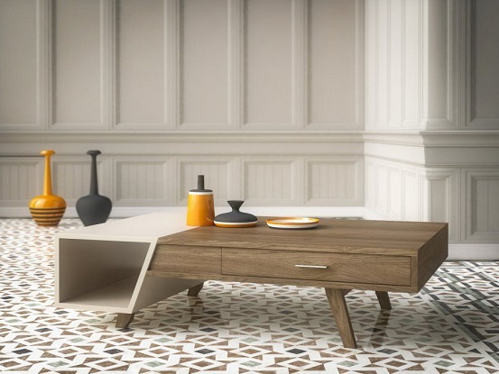 Μοντέρνο τραπεζάκι σαλονιού σε δρυ με λάκα.