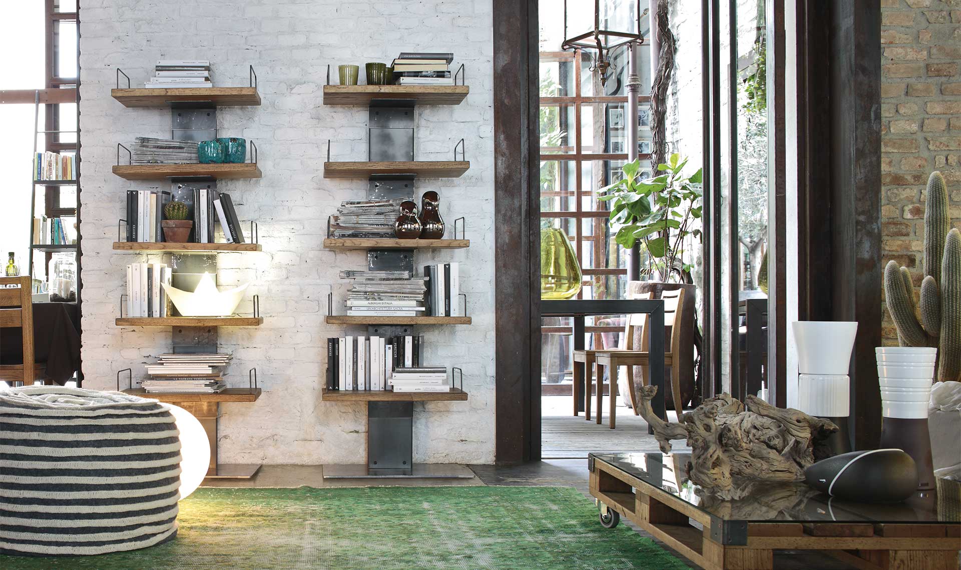 Μοντέρνα βιβλιοθήκη παραγόμενη απο μέταλλο και μασίφ ξύλο δρυός.
