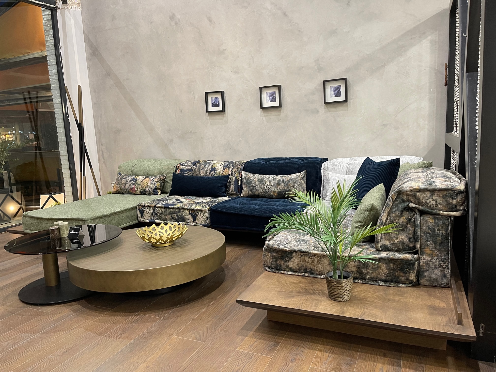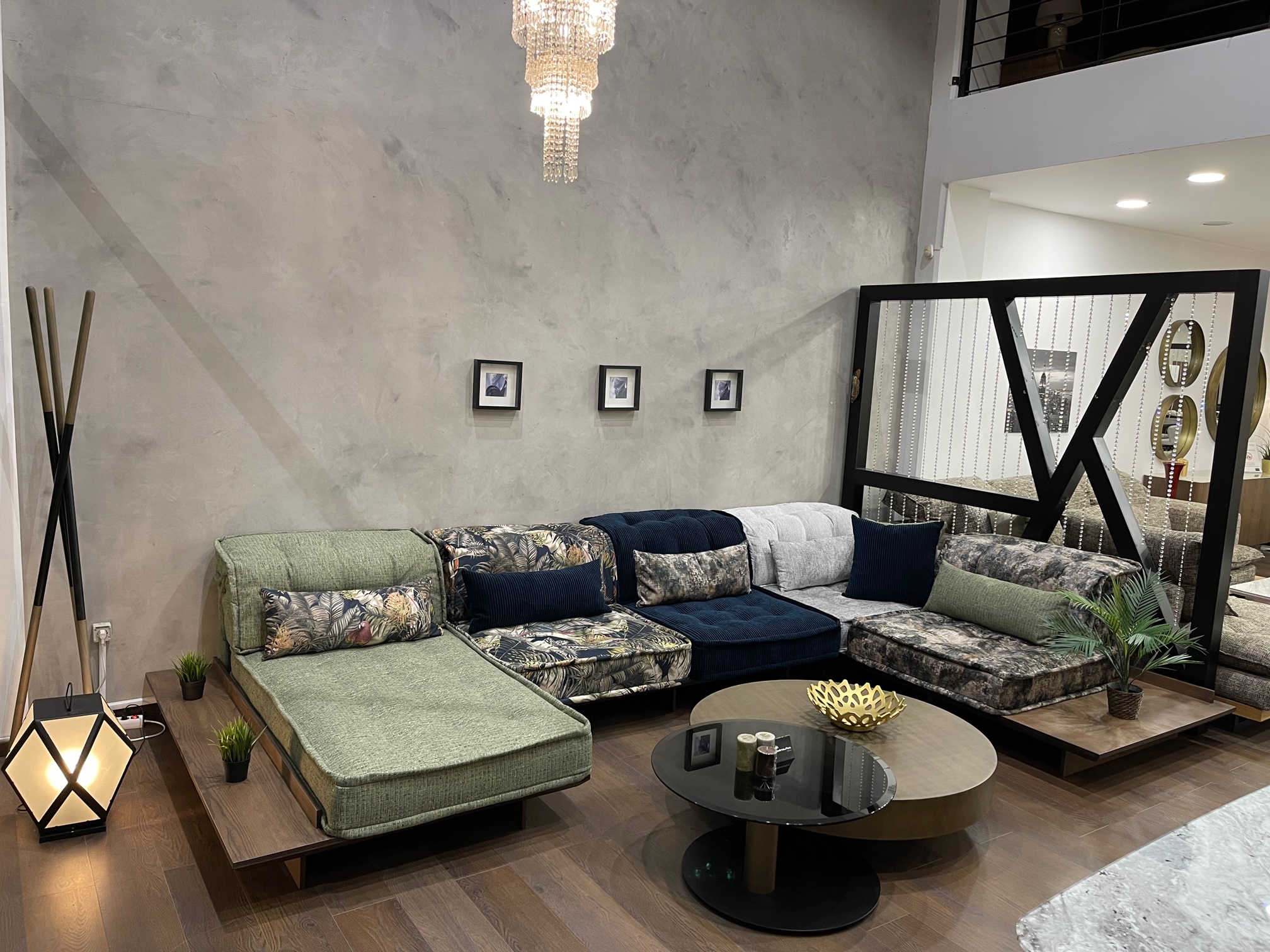 Μοντέρνο σαλόνι και ταυτόχρονα διαχρονικό.Ιδιαίτερο σαλόνι με ιδιαίτερα υφάσματα σε συνδυασμό με ξύλο ευκάλιπτου.Παράγεται σε πολλές διαστάσεις και ντύνεται με υφάσματα της επιλογής σας.Παράγεται και σε γωνία.Η διάσταση της φωτογραφίας είναι 430χ260χ180.